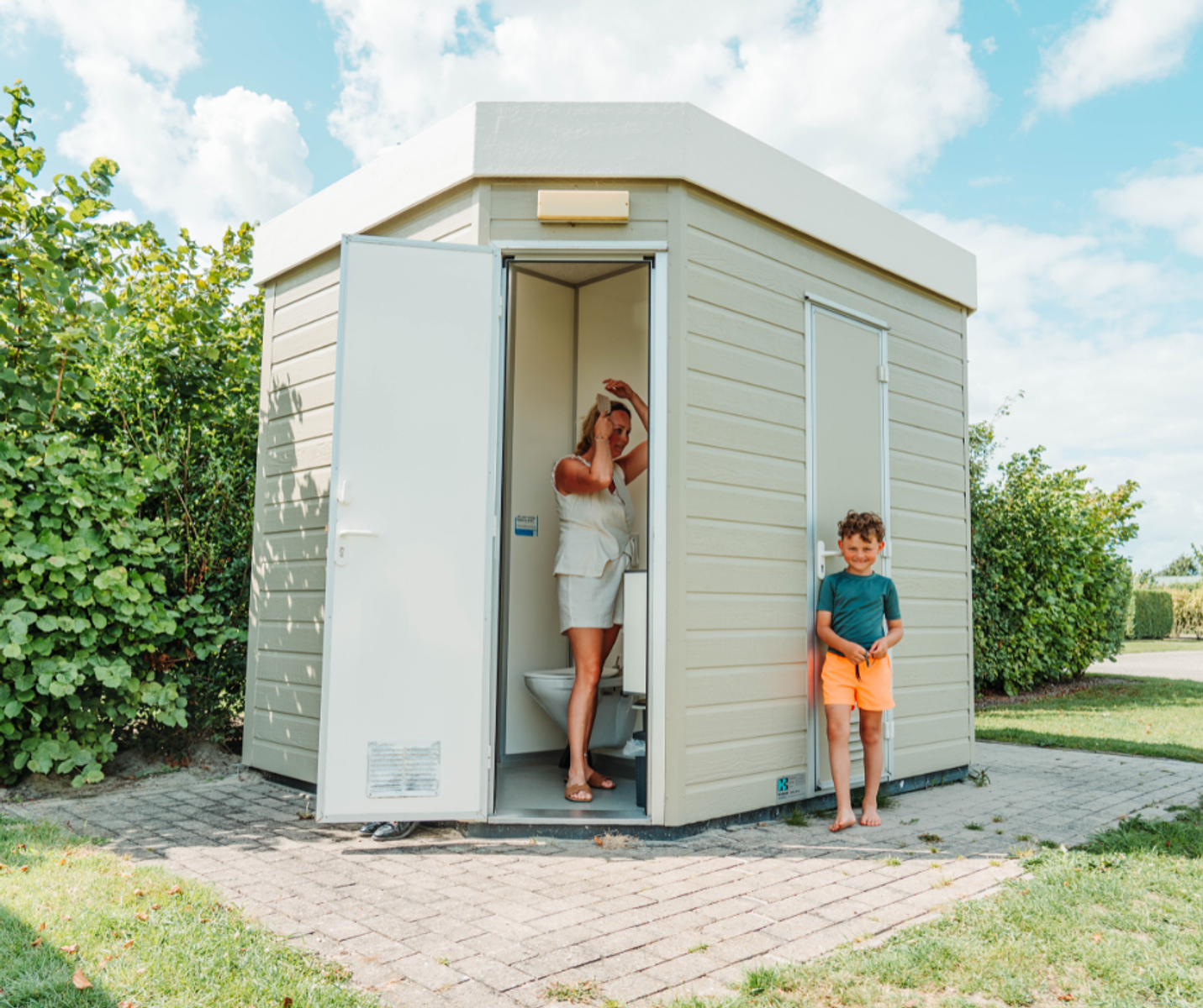 De knusse sfeer van een veldje, maar met voldoende ruimte! De plaatsen liggen beschut door hagen rondom de veldjes, wat zorgt voor extra privacy en gezelligheid. Elk veld heeft een water- en afvalwaterpunt. De veldjes zijn autovrij, maar in- en uitladen kan natuurlijk gewoon en je privébadkamer bevindt zich direct achter je plek.